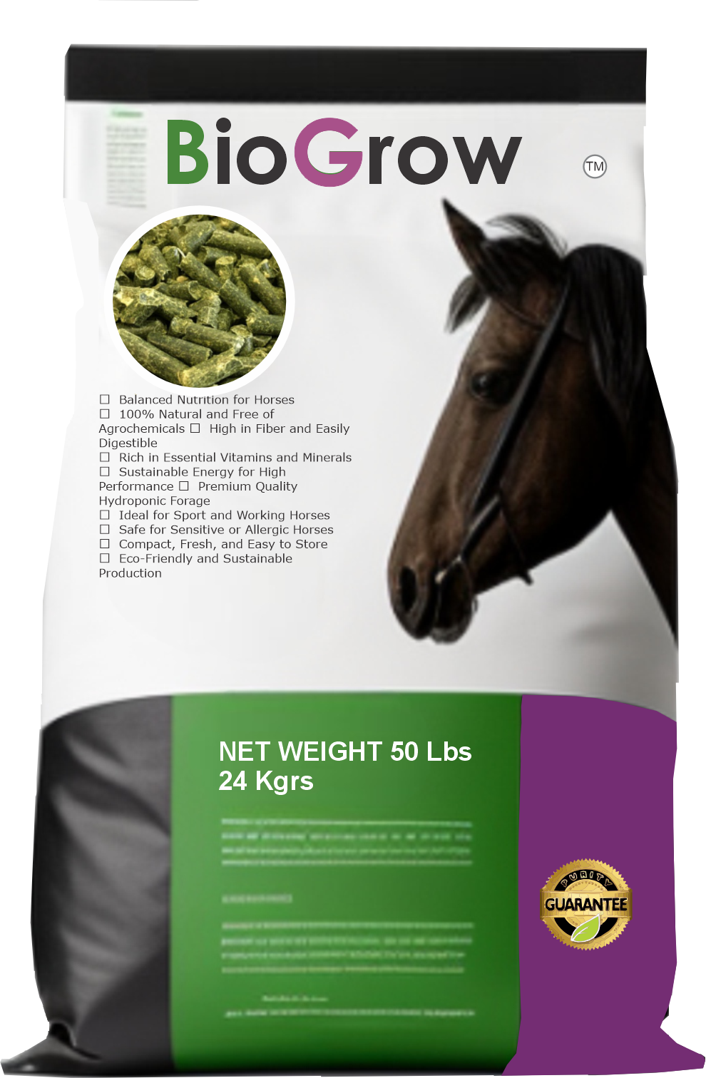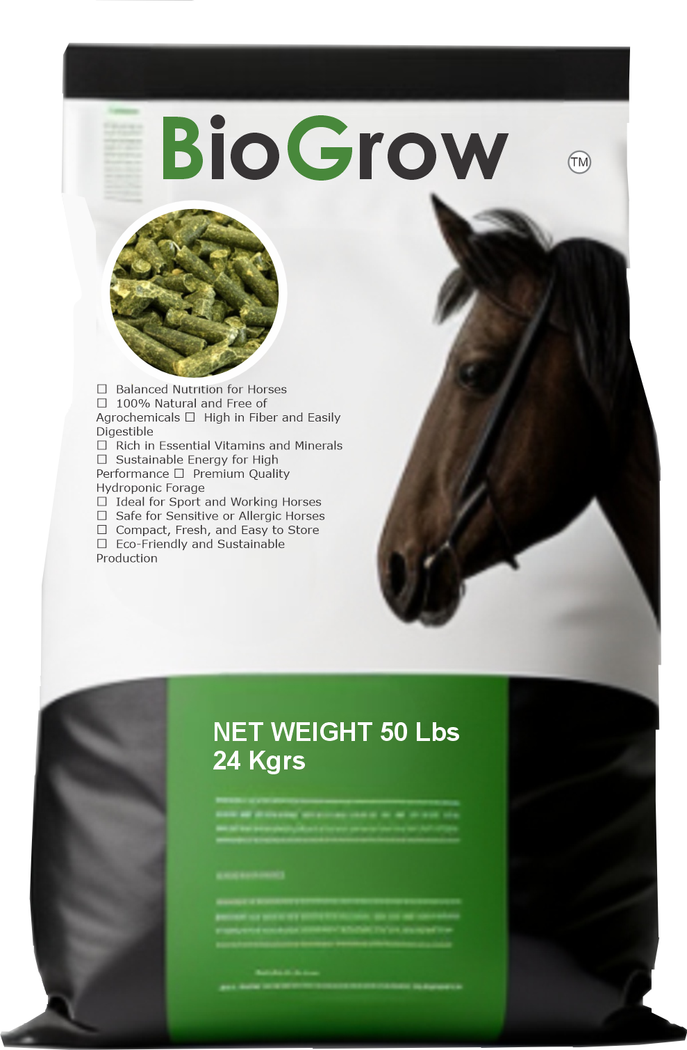 Pellets made exclusively from hydroponic forage offer pure, chemical-free nutrition, ensuring a safe and healthy feed for animals. They are highly digestible and rich in essential vitamins, minerals, and antioxidants, promoting optimal health, energy, and performance. Reduces water usage and eliminates the need for pesticides or fertilizer making them an eco-friendly and premium-quality choice.